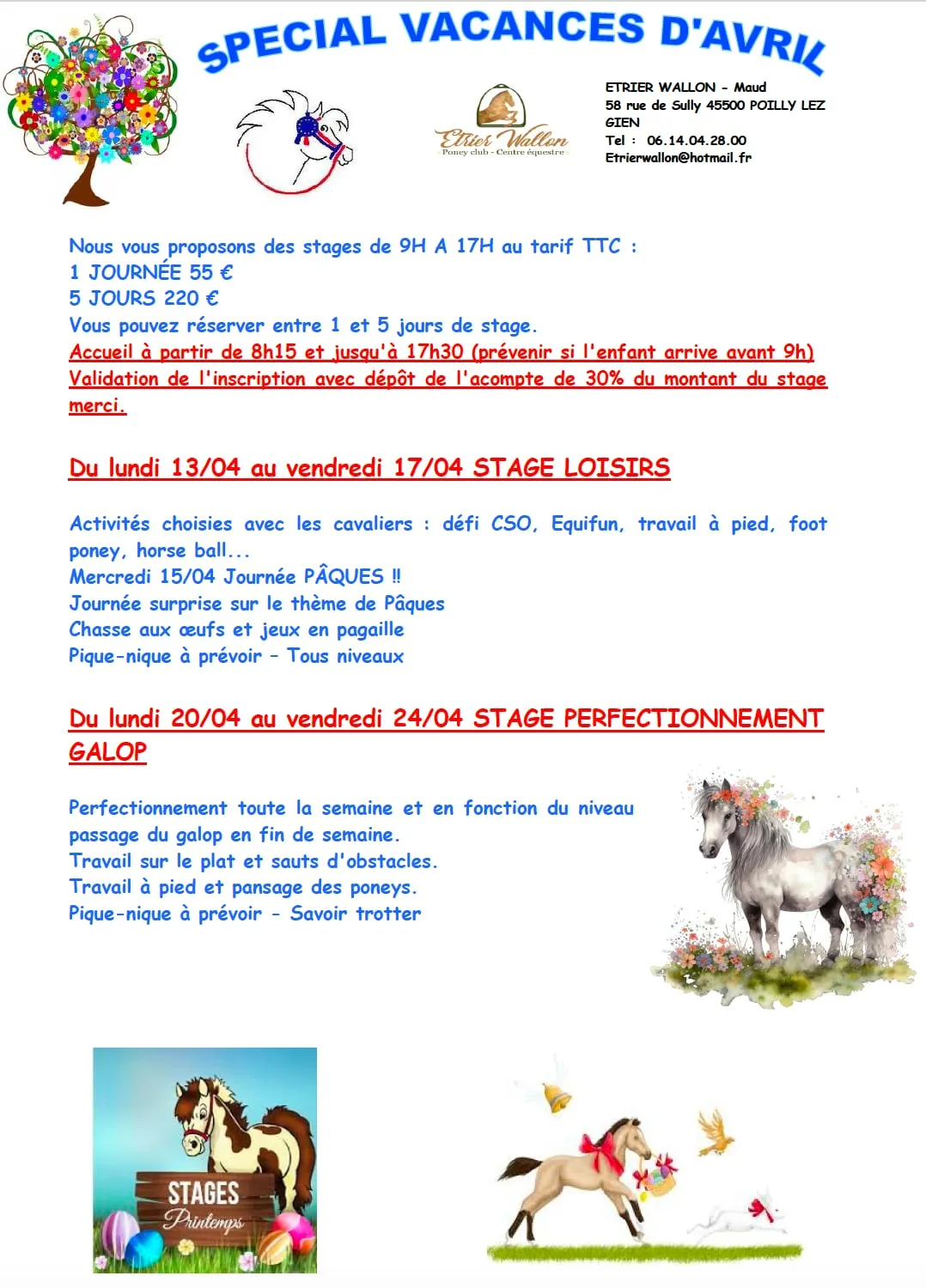 Spécial Vacances d'Avril - STAGE PERFECTIONNEMENT GALOP - Du lundi 20/04 au vendredi 24/04