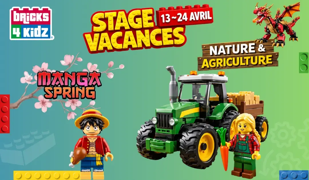 Les enfants découvrent le monde de la nature et de la ferme en construisant tracteurs, animaux, champs et bâtiments agricoles en briques LEGO®. Une semaine pour explorer la vie à la campagne, comprendre l’univers agricole et imaginer des paysages printaniers pleins de vie.