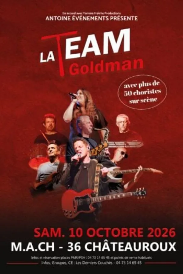 Après un premier Zénith d'Auvergne en décembre 2024 couronné d’un énorme succès devant plus de 4 500 personnes, La TEAM Goldman revient avec un nouveau show exclusivement composé des tubes de Jean-Jacques GOLDMAN en versions 100% live avec plus de 50 choristes sur scène.