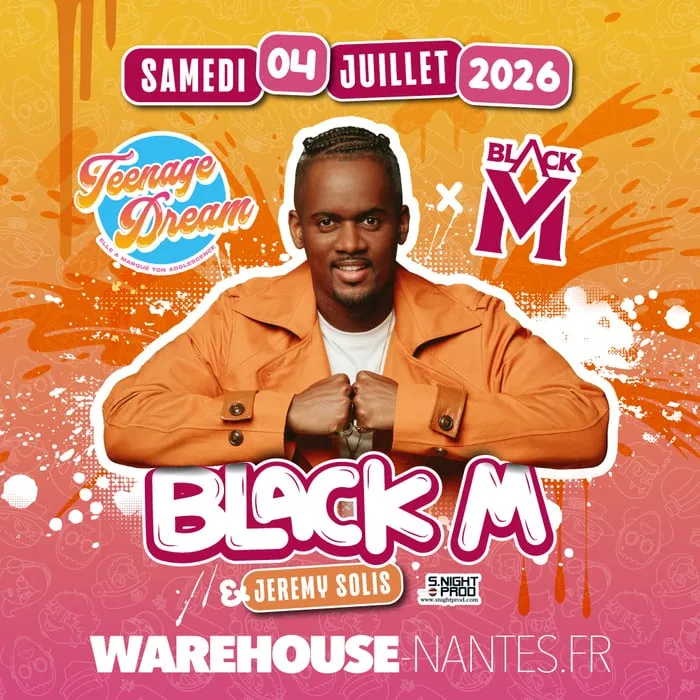 Black M sera l’invité exceptionnel de TEENAGE DREAM au Warehouse Nantes le samedi 4 juillet 2026.