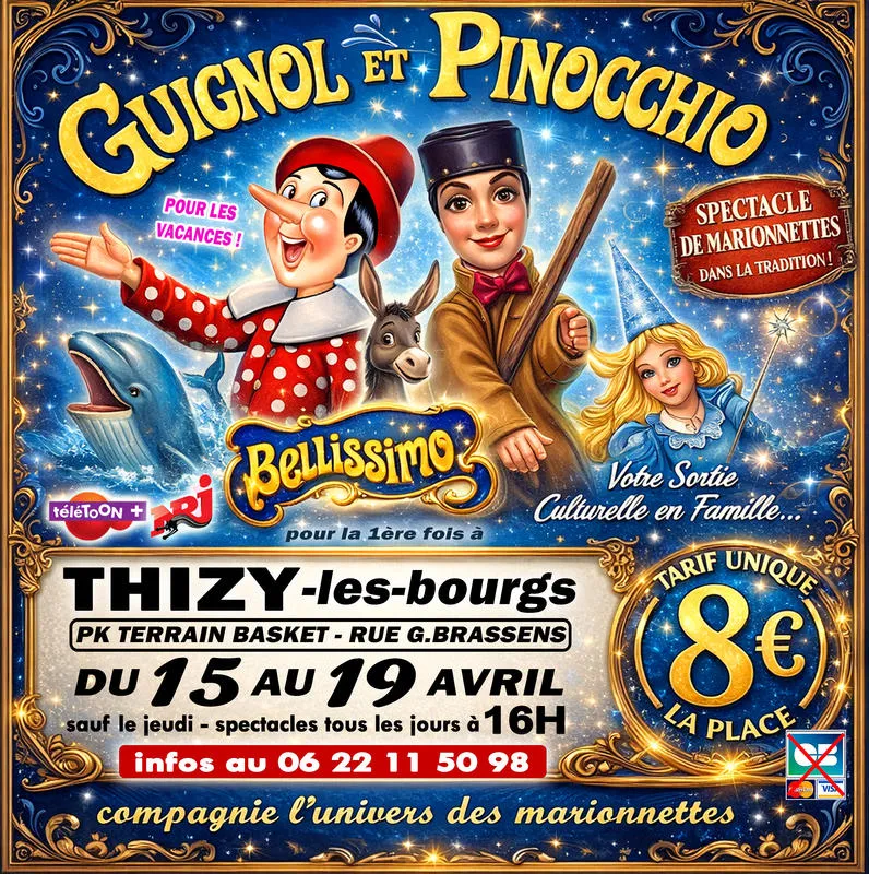 L'Histoire : Suivez les péripéties de Pinocchio face aux ruses d'un vilain Renard. Entre rires et frissons, notre petit héros devra échapper à une transformation en âne et affronter une terrible baleine ! Heureusement, Guignol et son célèbre bâton veillent au grain. Mais pour sauver Pinocchio, il aura besoin de l'aide précieuse et des cris de tous les enfants !