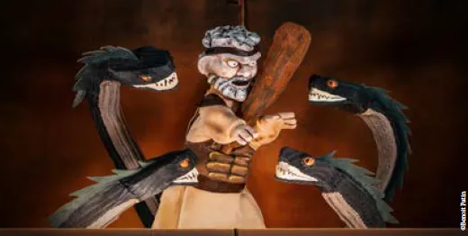 Deux marionnettistes loufoques et passionnés tentent de raconter ce mythe et d’éduquer, grâce à lui, la jeune génération