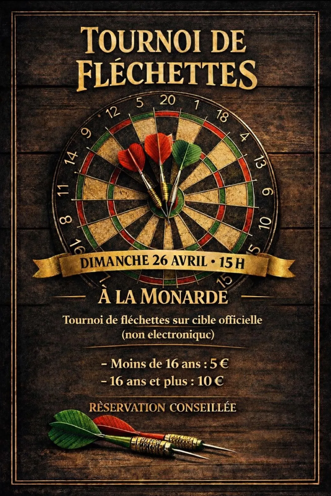 Venez tester votre précision et partager un moment convivial autour des fléchettes authentiques sur cible traditionnelle (non électronique).