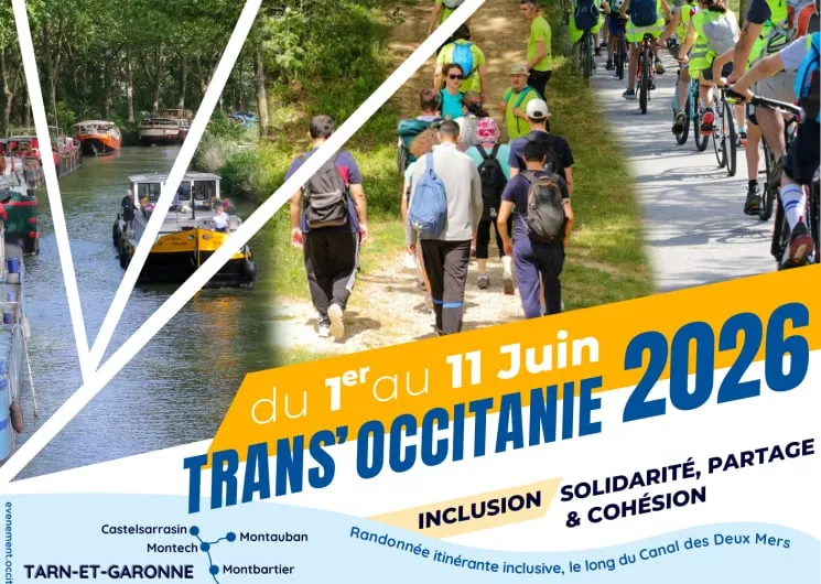 Multi-Disciplines : randonnée, joëlettes, roller, tricycle, vélo, etc Promesses : #TransOccitanie #SportAdapté #Inclusion #Occitanie #Solidarité #CanalDuMidi #UNESCO30ans #Cohésion #SportPourTous #Mixité Caractéristiques de l’événement : 📍 Où ? Canal des Deux Mers – De Montauban (82) au Grau du Roi (30) 📅 Quand ? 1er au 11 Juin 2026 👥 Nb de participants : 1000 participants attendus 👥 Nb d’associations mobilisées : + de 60 associations Les étapes : – Mardi 2 juin: Gallician – Le Grau-du-Roi – Mercredi 3 juin: Carnon – Villeneuve-lès-Maguelone – Jeudi 4 juin: Sète – Marseillan – Vendredi 5 juin : Capestang – Le Somail Puis possibilité de poursuivre l’aventure : – Lundi 8 juin : Lac de Saint-Ferréol – Seuil de Naurouze – Mardi 9 juin : Avignonet-Lauragais – Castelnaudary – Mercredi 10 juin : Castelnaudary – Bram – Jeudi 11 juin : Trèbes – Carcassonne — LA TRANS’OCCITANIE 2026 – UNE TRAVERSEE SPORTIVE ET SOLIDAIRE Organisée par la Ligue du Sport Adapté Occitanie, la Trans’Occitanie est une traversée itinérante unique qui parcourt la région sur plusieurs jours et en plusieurs étapes. En 2026, elle prendra une dimension symbolique particulière : l’événement viendra célébrer les 30 ans de l’inscription du Canal du Midi au patrimoine mondial de l’UNESCO. Au fil du canal et de ses paysages emblématiques, ce relais multisports ouvert à tous favorise la rencontre entre personnes en situation de handicap, scolaires, clubs sportifs, entreprises, familles et bénévoles. C’est une invitation à bouger ensemble, à partager le goût de l’effort et à redécouvrir le territoire occitan sous un angle inclusif et solidaire. UN MANIFESTE POUR L’INCLUSION ET LA CITOYENNETE Au cœur de cette aventure, la Trans’Occitanie défend une vision forte : le sport comme levier d’inclusion sociale et d’égalité des chances. Portée par les comités départementaux du sport adapté, chaque étape s’ancre dans le territoire et mobilise ses acteurs pour créer une dynamique collective. Ouverte à tous, elle encourage la mixité, sensibilise aux enjeux de l’accessibilité et favorise la cohésion sociale. Plus qu’un simple défi sportif, la Trans’Occitanie 2026 sera un manifeste en mouvement pour une société plus solidaire et citoyenne, tout en rendant hommage au Canal du Midi et à son héritage universel.