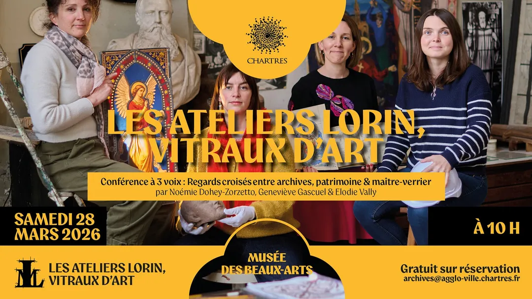 Conférence à 3 voix : Regards croisés entre archives, patrimoine et maître verrier par Noémie Dohey-Zorzetto, Geneviève Gascuel et Élodie Vally.