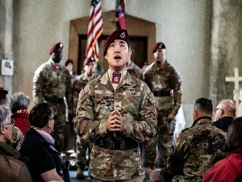 Chapelle Saint-Ferréol de Cauquigny, veillée en l’honneur des soldats tués le 6 juin 1944, en présence de plusieurs représentants religieux internationaux.