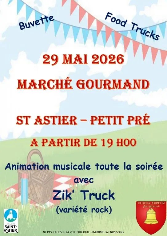 Marché gourmand et artisanal : food trucks, buvette, stands artisans locaux.