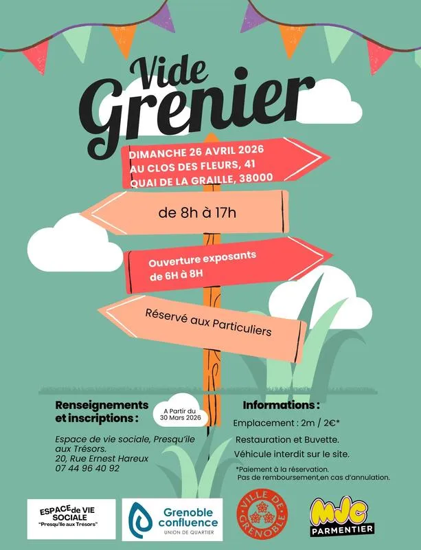 Permanences d'inscription à l'Espace de Vie Sociale Presqu'Ile aux Trésors, 20 rue Ernest Hareux, 38 000 Grenoble. Que pour les particuliers.