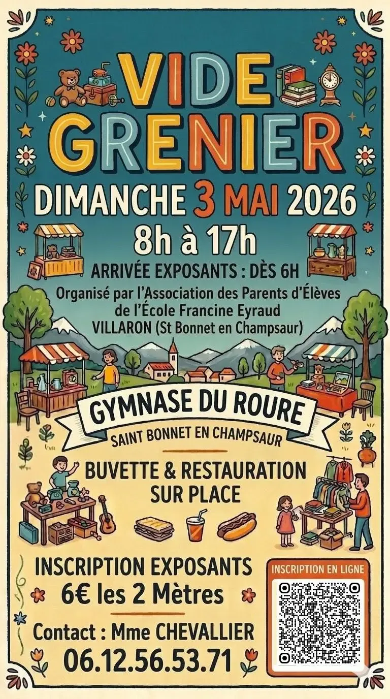 Vide grenier organisé par l'Association des parents d'élèves de l'école Francine Eyraud-Villaron à Saint Bonnet.