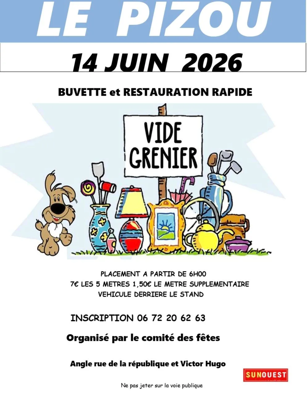 Vide-greniers, buvette et restauration rapide à l'angle de la rue de la République et Victor Hugo - 7 € les 5m 1,50 € le mètre supplémentaire avec le véhicule derrière le stand.