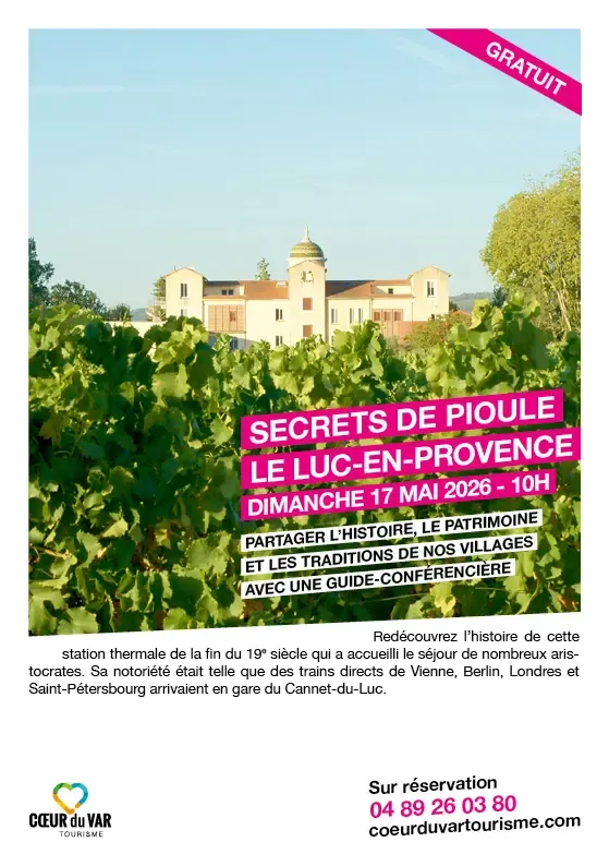 Visite guidée gratuite "Secrets de Pioule" au Luc le dimanche 17 mai 2026 à 10h.