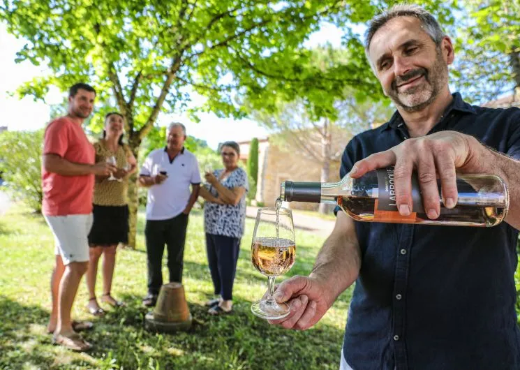 Un moment de partage au plus près de notre travail de vigneron. Découvrez l’univers des vins du domaine de Larroque: dégustation gourmande de nos vins bio et de produits du terroir sélectionnés parmi nos producteurs préférés, sans oublier les jus de raisin faits maison. Visite de notre cave de vinification et de la cave d’élevage dans le rocher, sous la maison, et balade dans les vignes pour découvrir nos cépages autochtones. Un moment chaleureux en petit comité pour prendre le temps de découvrir notre travail, notre domaine et déguster nos vins.