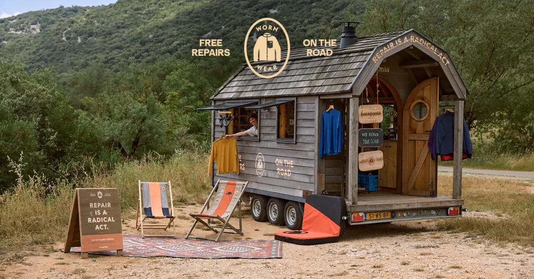 La roulotte de réparation Patagonia s'installe dans le village et propose de réparer gratuitement vos vêtements, quelle que soit la marque.